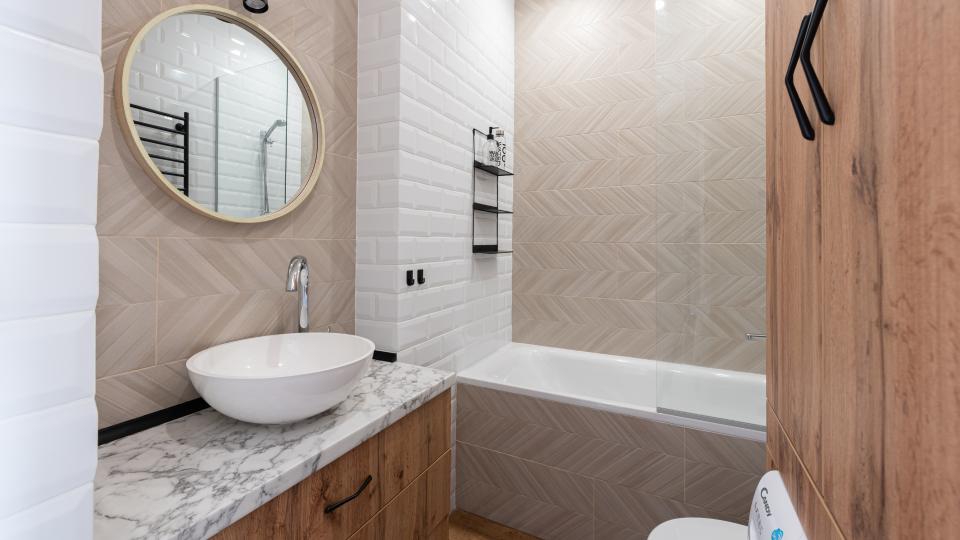 • Tezgâhlı lavabo, LED aynalar, özel musluk setleri